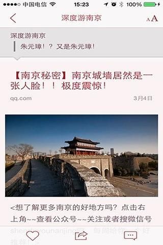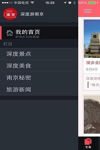 深度游南京手机客户端为游客和市民讲诉了不为人知的绝妙美景、深藏街巷的地道美食、从未发现过的野史传奇,一个都不能少!发现一个你所熟悉却又陌生的南京!触碰文化、感悟历史,深度游南京,我们一同行!有了它你讲对南京有了深度的认识,一路开心!
