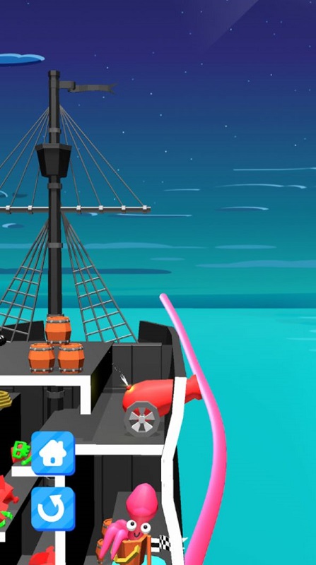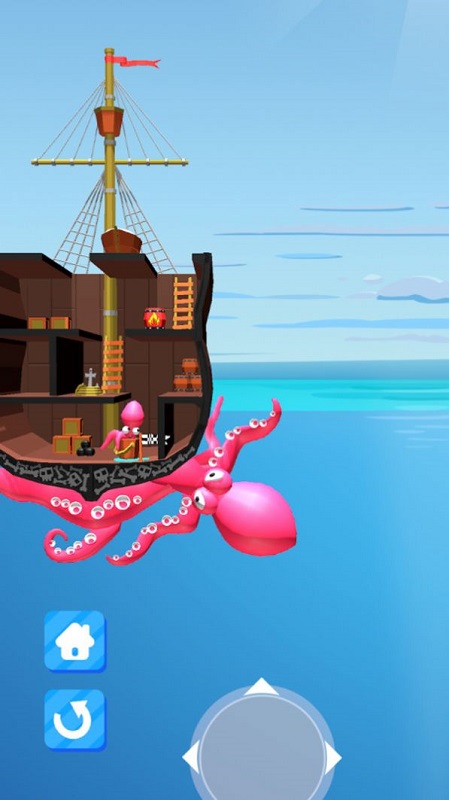3.扬帆起航,在大海上看到八爪鱼之后要将他们消灭,彼此吸附在船只上,需要您发动自己的才智消灭它们;