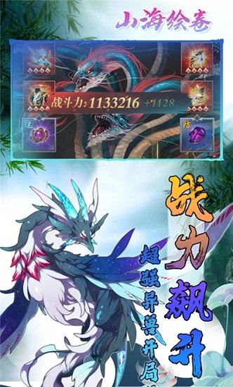 山海绘卷游戏中充满了中国上古神话中山海经中的故事剧情,各种山海异兽给你带来超震撼的视觉盛宴,唯美高清的游戏场景和惊心动魄的打斗场面,还可以不断的捕获各种神兽为你而战,感兴趣的小伙伴下载试试看吧!