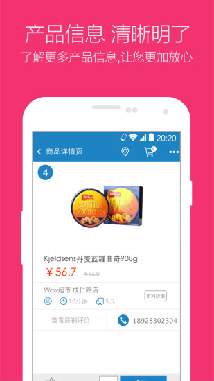 成都店里客是一款生活服务类手机软件,相当于您身边的移动超市,在这里你可以看到详细的产品信息,休闲零食、日常饮品、营养主食、饮酒保健一应俱全,一键下单货到付款还提供发票,30分钟给您送到家,喜爱的朋友赶快下载体验吧!