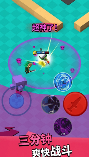 游戏玩法简单有趣,丰富的游戏模式可以挑战,在这里玩家可以参加持续四分钟的快速动态战斗