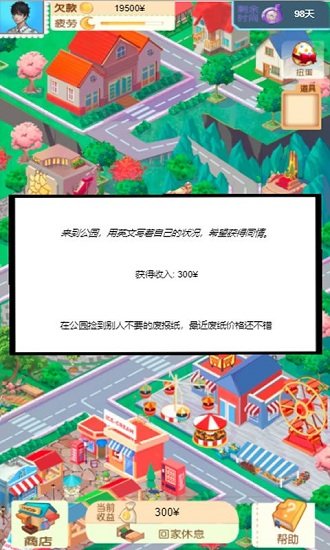 1.这款游戏的剧情设定非常的有趣,模拟的是一个流浪汉的日常生活;