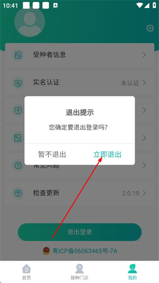 3、在弹出的退出提示弹窗中,点击立即退出,即可完成退出登录操作。