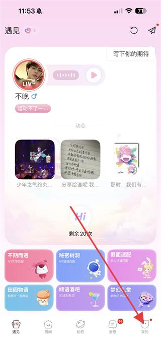 1、打开语玩应用,点击底部导航栏的我的选项。