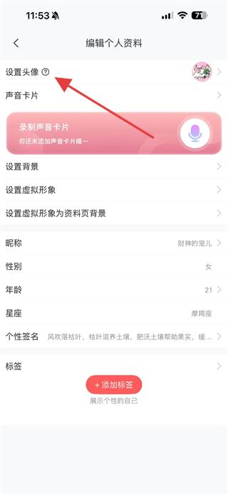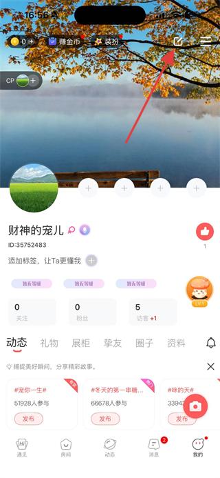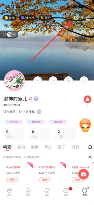 2、在个人页面中点击编辑图标,进入编辑个人资料界面。
