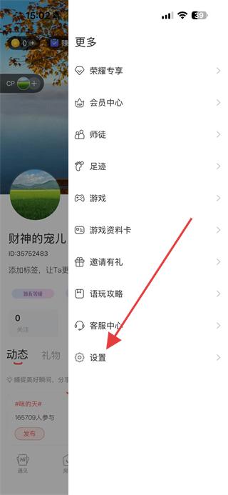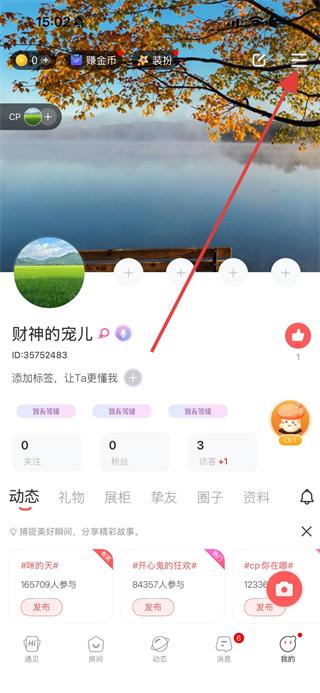 1、打开语玩APP,点击右上角三条横线图标,弹出功能菜单。