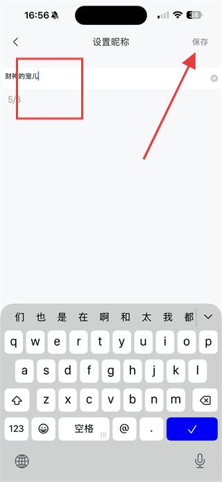 4、在昵称设置页面中输入新昵称,点击保存,完成语玩改名字的操作。