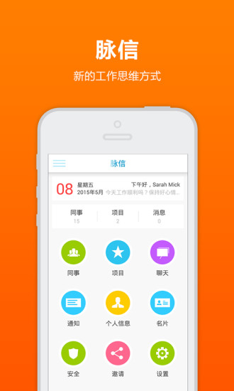 脉信是移动互联时代最佳沟通协作APP,以团队为核心,扁平化管理项目,是一种新的工作思维方式。“小伙伴”用手机就可以随时随地查看公司同事信息,语音沟通,跟进项目,分享任务进度,还可以一键分享个性化社交名片。