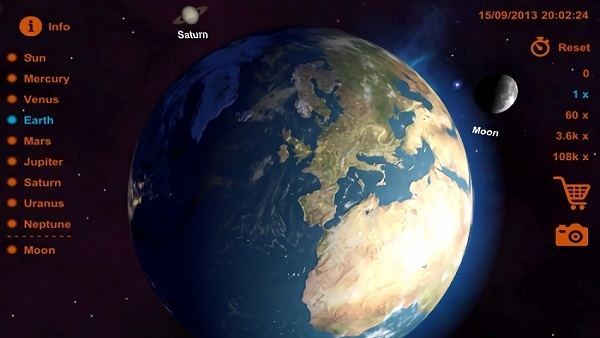-带有加速选项的计时器设置,可了解太阳系的旋转和绕行基本原理