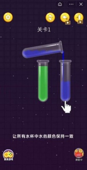 2.玩家必须要将玻璃瓶中指定的颜色灌满才可以完成。