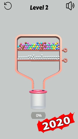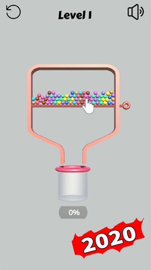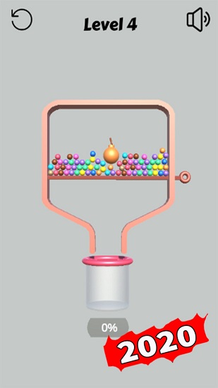 1.简约游戏画风,瓶子被针构成好玩的小世界,如何把球球倒出来。