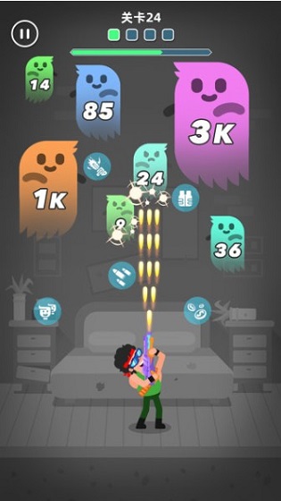 休闲的躲避游戏,你可以使用各种枪械,击败各种能力的鬼魂;