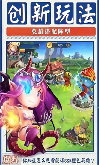 攻、防、辅助等八个大阵营,数十种各具特色英雄,千种组合塑造全新塔防游戏;