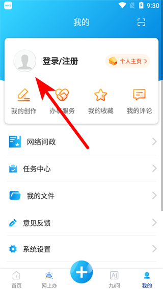 2、在个人的页面,需要点击登录/注册,进入登录方式选择界面。