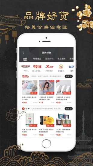 拥有上千万品牌商品。女装、男装、海购、化妆品、鞋包、数码、母婴、零食等数百种品类折扣优惠券,购买享受更低的价格,买到你相中的品牌,让顾客轻松一站式购物比双十一还划算!