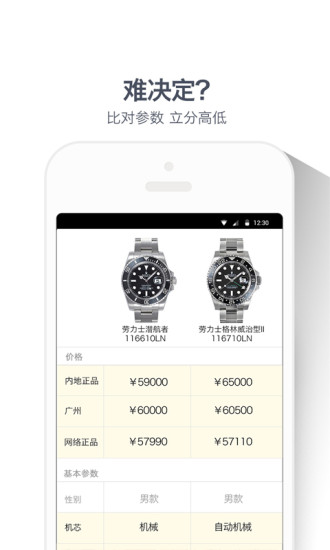 史上第一款腕表对比工具实用app,致力于为表友解决买表中的3个难题.买哪款手表?去哪买手表?腕表最低多少钱?最大的名表平台;曝光所有手表渠道底价;创新的以图搜表功能;提供最全的筛选条件;还可以全面的参数对比.人人都可以成为名表专业买家!