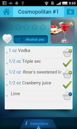 3、鸡尾酒的所有成分你都能搭配的更加完美,让你调制的美酒口味更加完美。