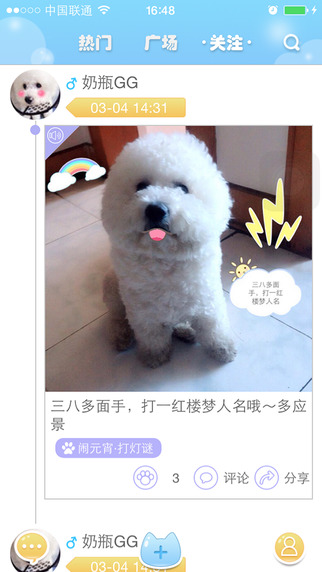 关注你喜欢的爱宠,实时关注它的动态,随时互动评论,建立自己的爱宠圈!