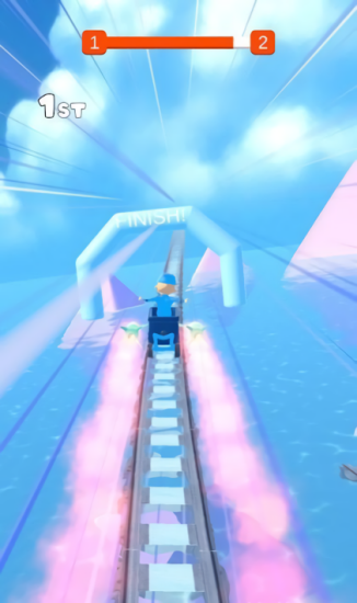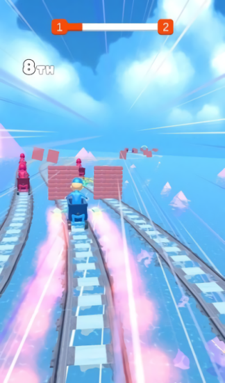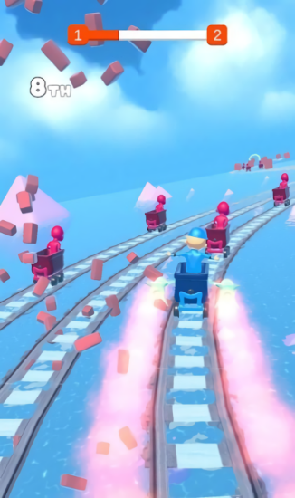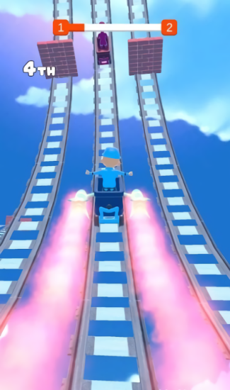 过山车比赛是非常有趣的休闲竞速手游。玩家要在3个过山车赛道上和其他人展开竞速。游戏过程中会有许多障碍物阻挡玩家前进,玩家需要避开他们转移到其他赛道继续驾驶。如果玩家撞上障碍物就会被减速导致被其他选手超过。游戏非常考验玩家的反应能力,只要你反应够快那么这些障碍物在你面前就像没有一样,你就可以轻松超过其他选手。