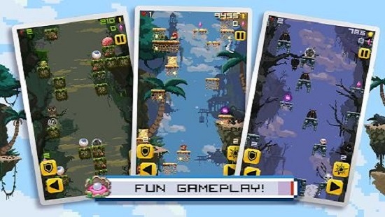 相信大家在看到滑板下坠时一定会想起Get Set Games的《Mega Jump》(非常跳跃)吧,就和名字所说的那样,在滑板下坠中玩家需要让主人公不断往下走而非无尽地跳跃,而游戏玩法其实就是借鉴了经典的《是男人就下一百层》,不过本作无论画面、音效还是游戏性都要更胜一筹。