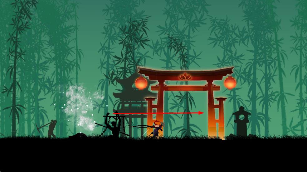 3、继续前行,引导忍者朝鸟居方向,避开途中敌人,抵达鸟居处完成阶段进程。