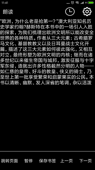提供定时停止阅读,摇一摇暂停/重新开始阅读等贴心功能
