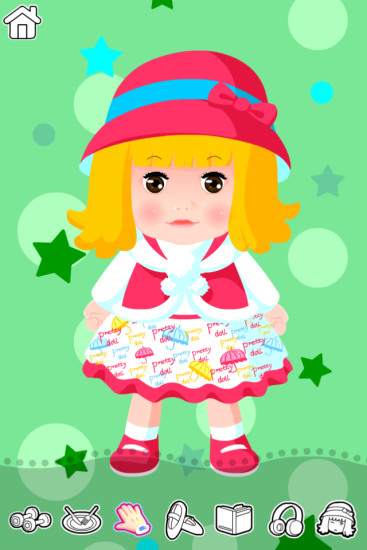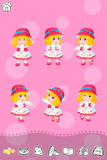 点击屏幕上的道具,如手套,舞鞋,耳机,哑铃,就可以让娃娃做相对应的动作。