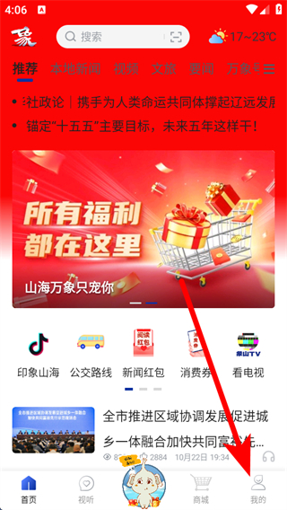 1、打开山海万象新闻,点击底部导航栏我的选项。