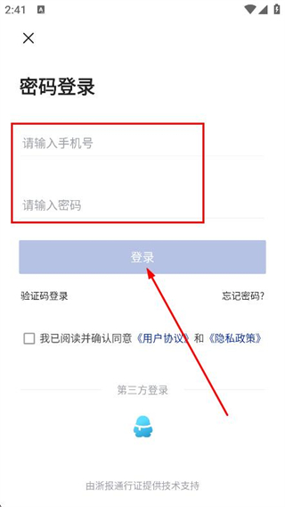 4、输入手机号和密码,点击登录即可完成账号登录。