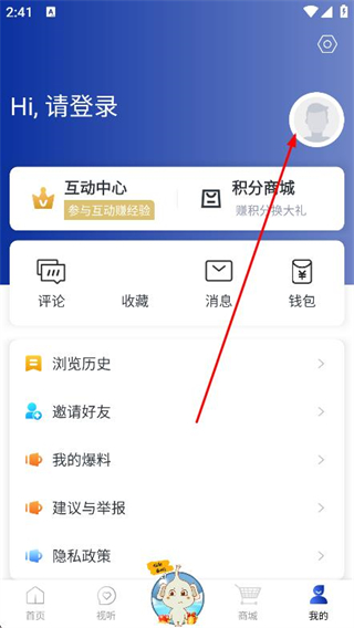 1、点击首页右上角人物图标