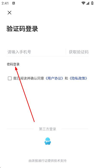 3、进入登录页面后,选择并点击下方的密码登录。