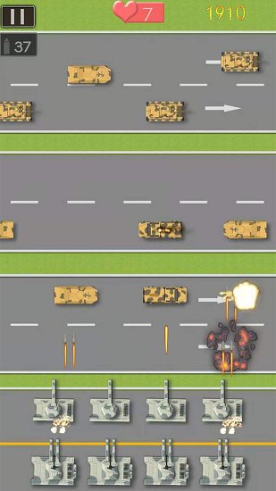 一款音游结合射击的游戏。源源不断的敌军来袭,点击坦克发射炮弹。不同的敌军需要不同的弹药结合摧毁。