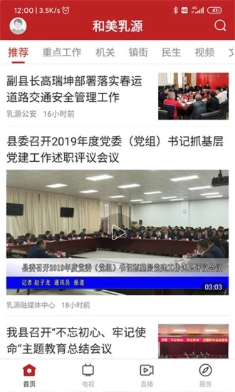 和美乳源app是为当地打造的一款新闻资讯平台,里面有着当地最具权威的新闻内容,用户可以随时在里面观看自己感兴趣的新闻,每天定时为你推送,里面还有本地的新闻直播节目,更重要的是加入了政务系统,当地居民办事更加的方便,喜欢的朋友赶紧下载体验吧。