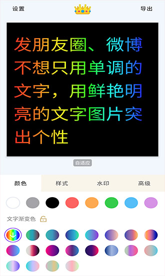 制作文字图片、手机壁纸、贺卡、朋友圈图片、微博长文、小红书文字卡片、纯色图片、文字头像、小说封面、海报、文字 LOGO、多彩艺术字。聊天发图神器,图片上加文字。支持万字长文,生成精美便签图片。