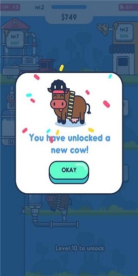 1、玩家可以自由升级自己的农场等级哦,解锁更多不同品种的奶牛来提升自己生产牛奶的速度!