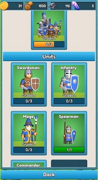 -游戏占用手机内存小,玩法丰富,玩家需要根据不同的敌人来快速合成更多高级士兵起来战斗。