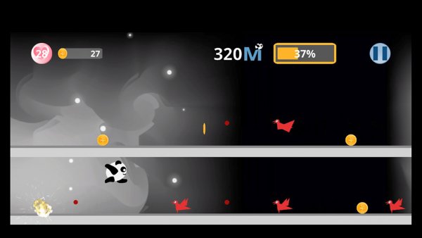 3、你将与圆滚滚可爱的小“胖达”一起开始一场向东边奔跑的冒险。这场跑酷的旅途虽然乐趣无穷,