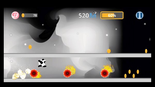 ◆可爱的熊猫一起跑酷,使用滚动、跳跃以及双跳等方式从复杂的道路中闯出一片生机。