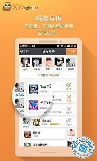 免费下载没有网络就不能下载游戏?看好友在玩新游戏却只能眼巴巴看着?XY游戏神器独创的“秒传”功能,让你在没有网络的情况下也能免费下载游戏,极速下载,不再等待,立刻与好友一起游戏一起high;