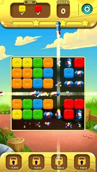 点击2个或更多相邻的方块爆炸并得分。每次移动时爆炸的方块越多,得分越高。尝试清除所有方块,您将获得奖励。