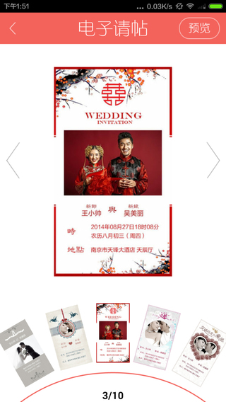 4.电子请帖:DIY设计自己的婚礼请帖发送邀请好友;