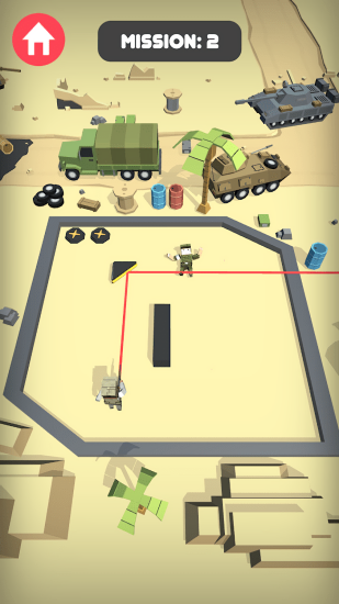 3、目标是杀死所有任务中的所有士兵,规划您的策略,旋转对象,行动并杀死所有敌人!