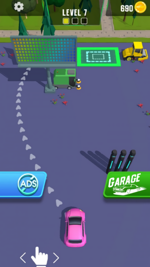 用你的手指画出预定的轨迹,绕过障碍物,把你的车停在正确的地方。