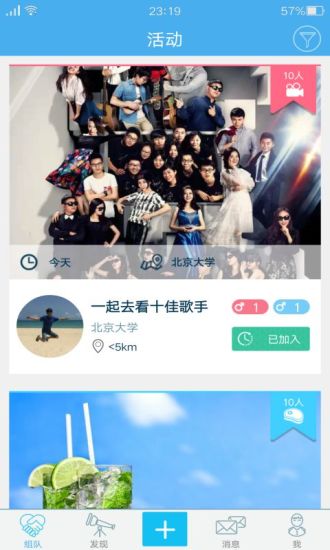 1.玩嗨中,您可以创建活动,也可以在组队模块中加入活动。