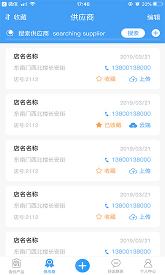 采购商利用这个应用可以添加供应商为好友,自己添加的全部供应商可以在此管理。