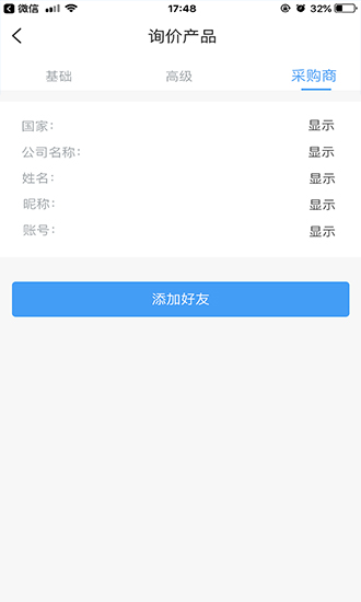 供应商一键搜索,采购商利用这里的搜索工具则可以自主的搜索供应商并添加好友。