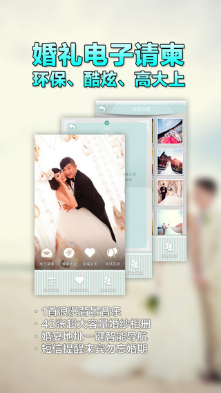 我们的婚礼ios是一款生活服务类手机软件,专为准备结婚的新人打造,在这里主要为新人设计别具一格的电子请柬,保证环保炫酷高大上,在婚礼现场还可以将婚纱中的照片进行滚动播放和亲友实时互动,欢迎大家下载体验吧!