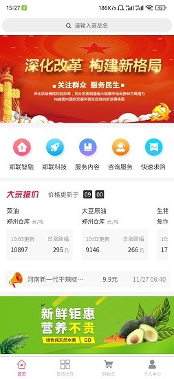 是由河南国土资产运营管理有限公司、河南农投产业投资有限公司、河南省金地遥感测绘技术有限公司等省直单位联合打造的大宗商品供应链管理平台,下辖独立开发的“郑联网”b2b产业商城。“郑联网”作为国有交易平台,发挥其公信力、影响力和资源整合力,依托智慧供应链提供线上线下一体化服务,营造高效、安全的农产品交易流通生态环境,提升农业综合效益,推动乡村产业振兴。