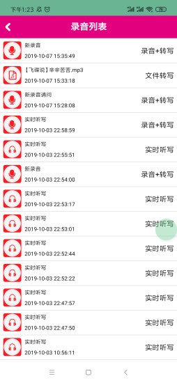 转写专家是一款语音识别APP,提供实时录音转文字、录音文件转文字、录音等功能,可以直接将听到的声音转成文字内容,支持普通话连续语音识别,同时支持音频文件直接转成文字,生成word。