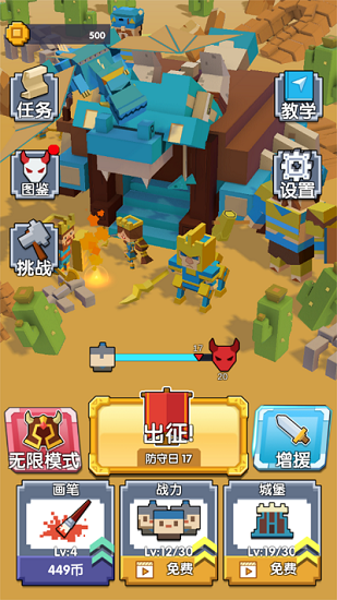一起通过画线来召唤不同的兵种进行防守我们的城池,召唤巨龙打败入侵者。战争一触即发,在屏幕上画出你的军队阵型,给敌人来一个出其不意的阵型,统计敌人直取敌将首级。解锁各种不同的兵种,灵活利用兵种属性,时刻关注战场局势,活出合理的阵型,赢得每一场战争的胜利。